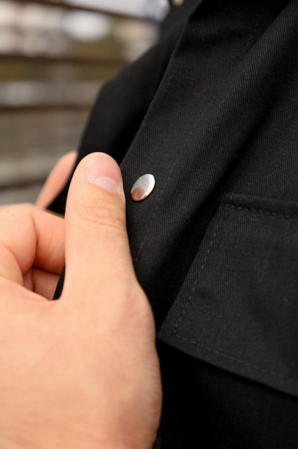 - Відкладний комір - на грудях дві кишені з клапанами - планка застібається на 7 кнопок - манжети також застібаються кнопками - крій прямий - склад: