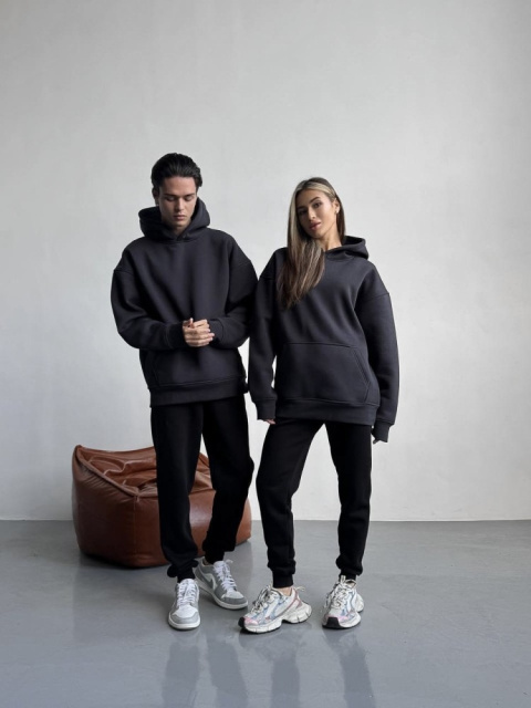 Оверсайз спортивний костюм з начосом унісекс худі графіт чорні штани RD418/RD421