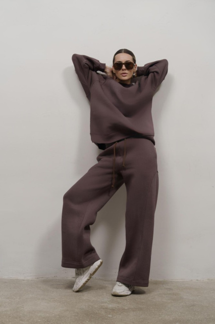 Цей комплект - це ваше нове натхнення у світі стилю та комфорту для повсякденних образів. Матеріал найвищої якості: М'який і теплий фліс, який піклується про вашу шкіру, забезпечує відмінну повітропроникність і довговічність. Забудьте про дискомфорт, з цим костюмом ви почуватиметеся чудово в будь-яку погоду. Завдяки вільному крою і ретельно продуманим деталям, він ідеально підходить для повсякденного носіння і активного способу життя. Основні характеристики: Матеріал: Високоякісний тринитковий футер з начосом (95% бавовна, 5% поліестер) - м'який, теплий, дихаючий і довговічний. Забезпечує комфорт на весь день. Товщина тканини: Щільність 340 г/м² - ідеальне поєднання міцності та легкості. Костюм прекрасно тримає форму, не мнеться і зберігає яскравість кольору навіть після багаторазового прання. Світшот: Об'ємний крій із заниженою лінією плечей і спущеними рукавами. М'які манжети надають додатковий затишок і стиль. Штани: Зручна висока посадка і злегка розкльошений низ візуально подовжують ноги і створюють елегантний силует. Шнурок: Регульований пояс зі щільним плетеним шнурком зі 100% бавовни, ідеально підібраним до кольору тканини, забезпечить комфортну посадку без зайвого тиску. Кишені: Глибокі бічні кишені в штанях - ідеальне місце для зберігання телефону, ключів або інших дрібниць. Ідеально підходить для: Повсякденного носіння - будьте впевнені, що будете виглядати стильно в будь-якій ситуації. Прогулянок і подорожей - легкий і зручний, він стане вашим надійним супутником у нових пригодах. Вдома, роботи та активного відпочинку - універсальність цього костюма дасть вам змогу почуватися комфортно та впевнено у будь-якому просторі. Скористайтеся можливістю додати в свій гардероб цей стильний і комфортний Костюм оверсайз на флісі «Alice». Ваш ідеальний вибір для будь-яких приводів. Заміри: Світшот - Розмір S Довжина по спині: 72 см; Довжина рукава (реглан): 66 см; Напівобхват груді: 61 см; Напівобхват талії: 58 см. - Розмір M Довжина по спині: 75 см; Довжина рукава (реглан): 67 см; Напівобхват груді: 63 см; Напівобхват талії: 59 см. - Розмір L Довжина по спині: 75 см; Довжина рукава (реглан): 69 см; Напівобхват груді: 63 см; Напівобхват талії: 60 см. - Розмір XL Довжина по спині: 76 см; Довжина рукава (реглан): 70 см; Напівобхват груді: 68 см; Напівобхват талії: 64 см. Штани - Розмір S Загальна довжина виробу: 100 см; Ширина по талії(не розтягнуто/розтягнуто): 31/38 см; Ширина по стегнам 55 см; Ширина штанини: 31 см. - Розмір M Загальна довжина виробу: 103 см; Ширина по талії(не розтягнуто/розтягнуто): 32/40 см; Ширина по стегнам 57 см; Ширина штанини: 32 см. - Розмір L Загальна довжина виробу: 104 см; Ширина по талії(не розтягнуто/розтягнуто): 33/42 см; Ширина по стегнам 58 см; Ширина штанини: 33 см. - Розмір XL Загальна довжина виробу: 104 см; Ширина по талії(не розтягнуто/розтягнуто): 33/43 см; Ширина по стегнам 60 см; Ширина штанини: 34 см.