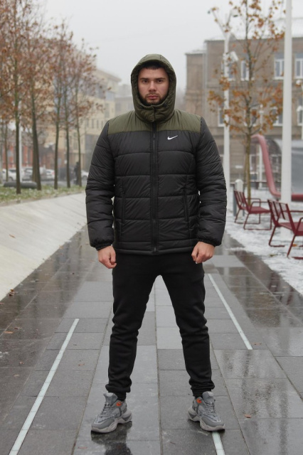 UA MarketРівненська областьHttps://vendom.ua.market/Товари та послугиЗимові курткиКомплект чоловічий Nike: куртка зимова «Frost» хакі-чорна + штани з тринитки утеплені чорні