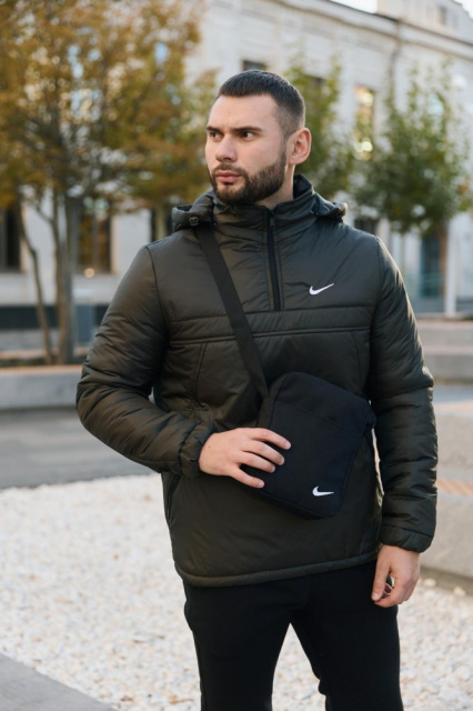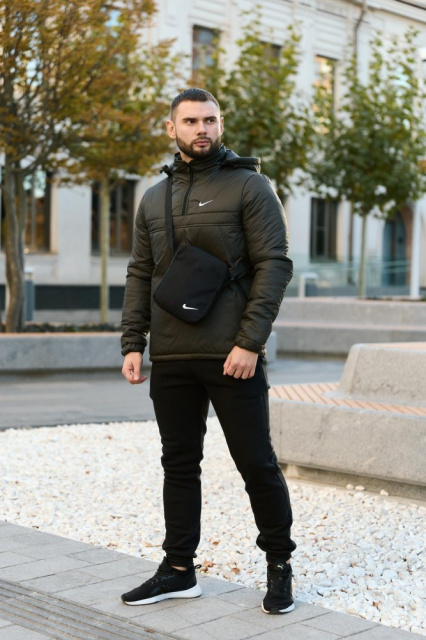 Комплект чоловічий Nike: анорак утеплений смарагдовий + штани з тринитки утеплені чорні. Барсетка У ПОДАРУНОК!