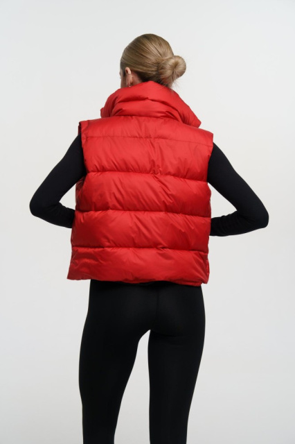 Ця жіноча жилетка — ідеальне поєднання функціональності та модного стилю. Вкорочений фасон підкреслює силует і гармонійно вписується в сучасні образи, роблячи жилетку універсальною для повсякденного носіння.