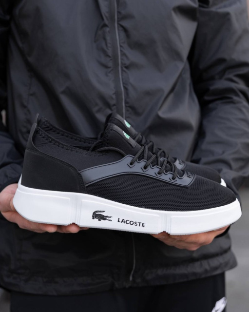 Кросівки літні Lacoste сітка колір: чорний - білий