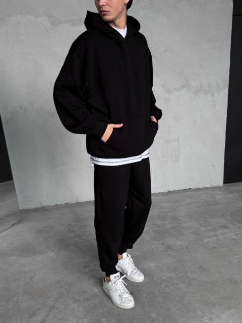 Оверсайз костюм Baza чорний худі чорні штани RD446/RD450
