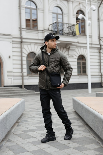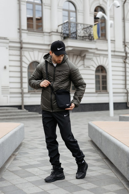 Комплект чоловічий: куртка Motion Nike хакі + штани «President» чорні. Барсетка у подарунок! (1882782072)