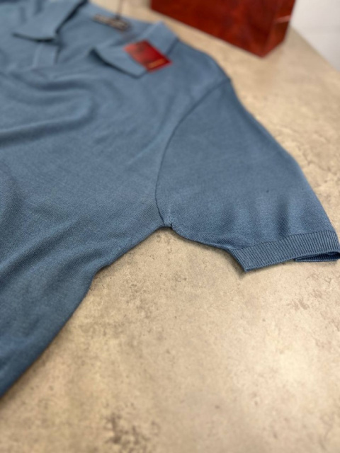 Трикотажне поло Stefano Ricci блакитного кольору з "V" подібним вирізом