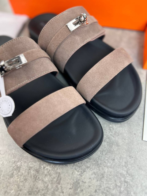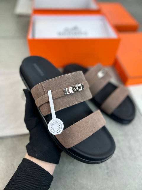 Сланцы Hermes Jackson etoupe Підошва: каучук Матеріал: шкіра Серійний номер У комплекті: коробка, пильовик, документи Розмірна сітка: 40-25 41-25,5 42-26 43 -26,5 44-27 45-27,5 46-28