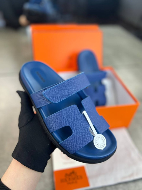 Сланцы Hermes Chepre Blue мужские сині Підошва: каучук Матеріал: шкіра У комплекті: коробка, пильовик, документи Розмірна сітка: 40-25 41-25,5 42-26 43 -26,5 44-27 45-27,5 46-28