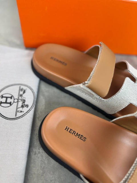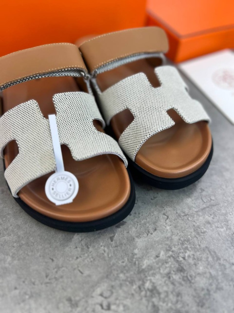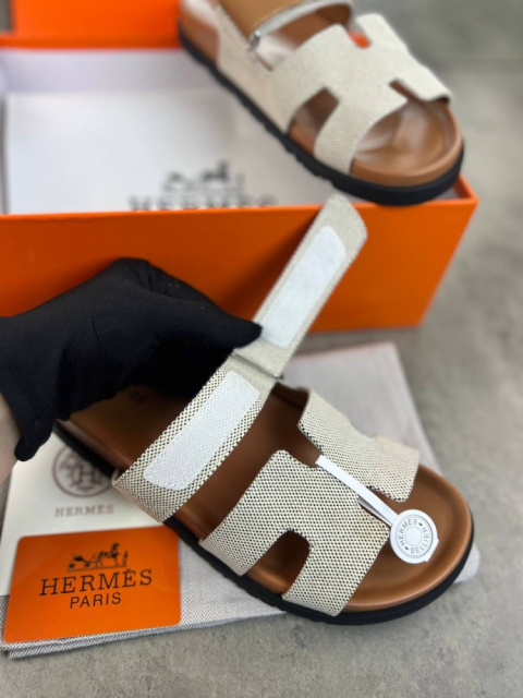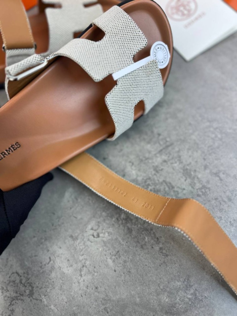 Сланцы Hermes Chypre beige/textile мужские с текстилем