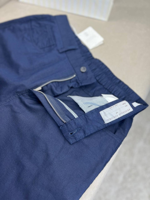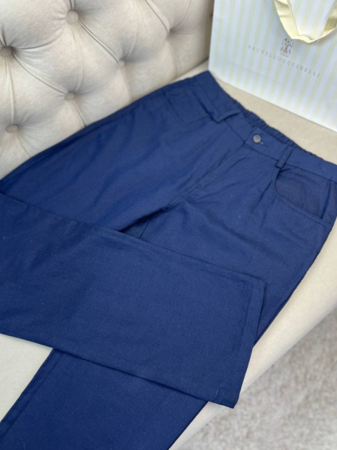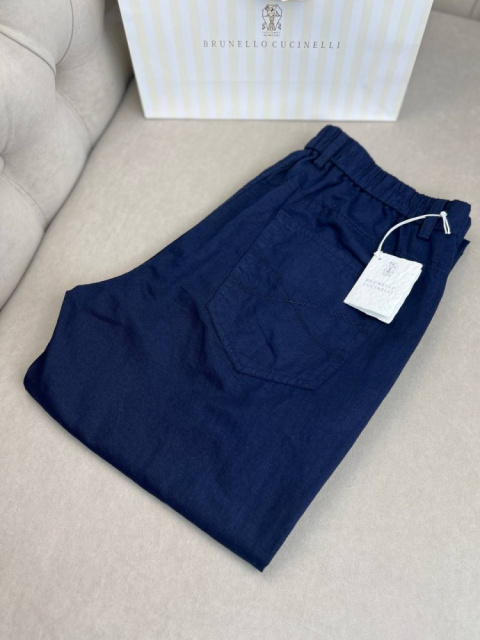 Льняні чоловічі штани Brunello Cucinelli темно-синього кольору