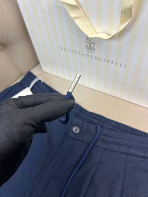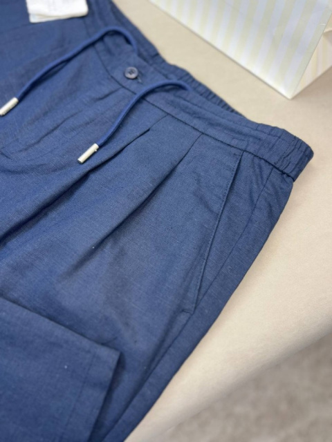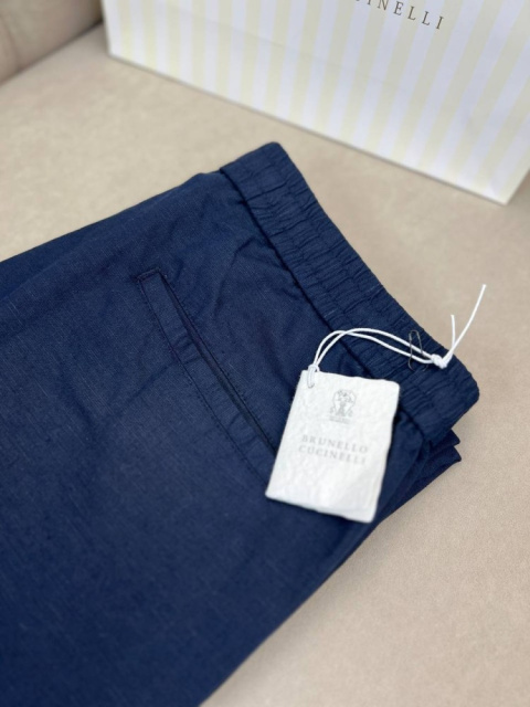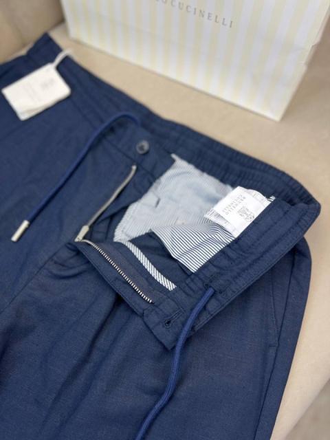 Льняні чоловічі штани Brunello Cucinelli темно-синього кольору на зав'язках 78049-1