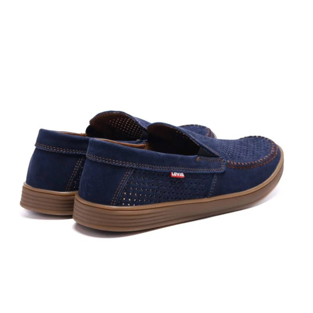 Літні шкіряні мокасини Levis перфорація колір темно-синій