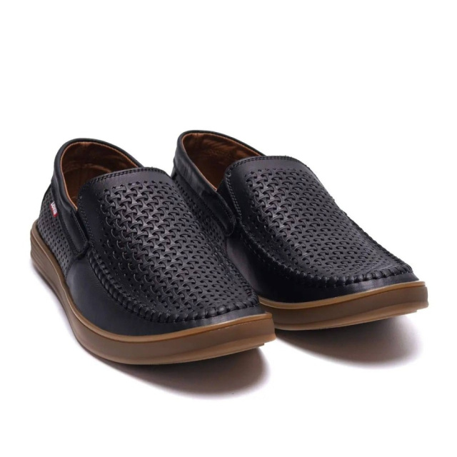 Літні шкіряні мокасини Levis перфорація колір чорний