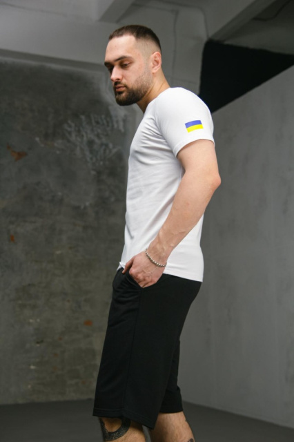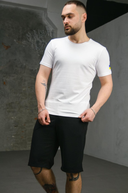 Комплект чоловічий Intruder: футболка з прапором на плечі біла + шорти трикотажні чорні (9324640614)