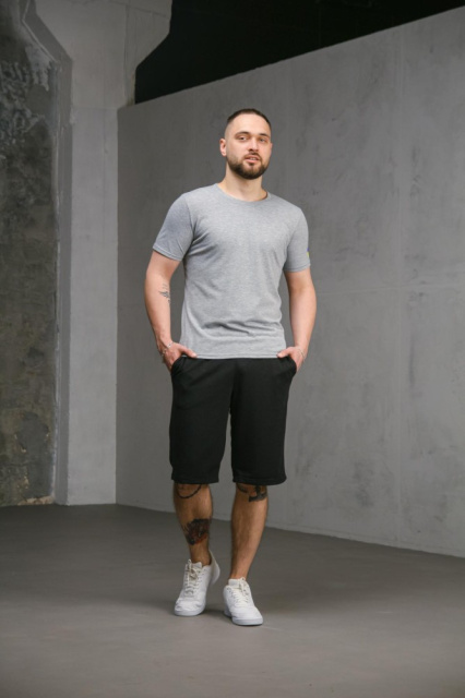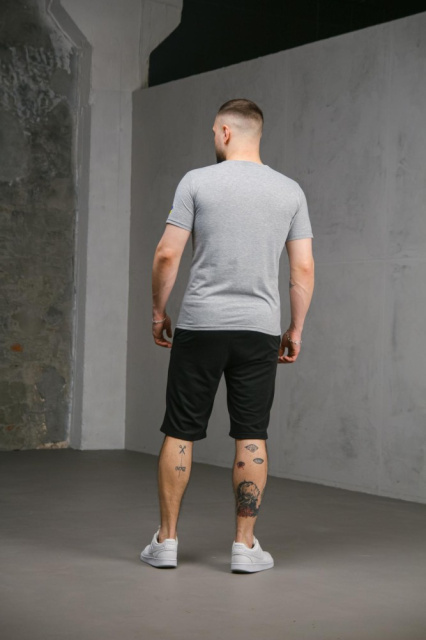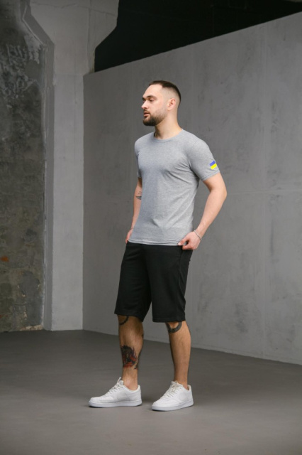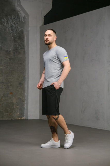 Комплект чоловічий Intruder: футболка з прапором на плечі сіра + шорти трикотажні чорні (8733979552)