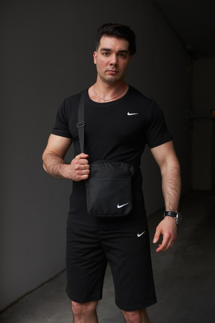 Комплект чоловічий Nike: футболка чорна + шорти чорні + барсетка чорна (1586983898)