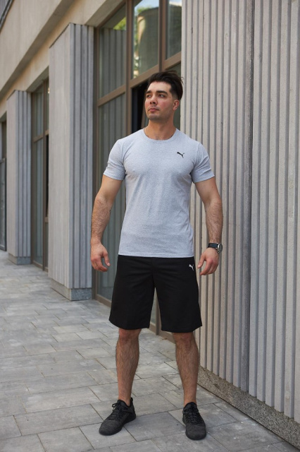 Комплект чоловічий Puma: футболка сіра + шорти чорні (9861453062)