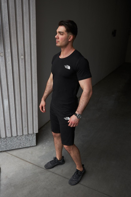 Комплект чоловічий TNF: футболка чорна + шорти чорні (9523748053)