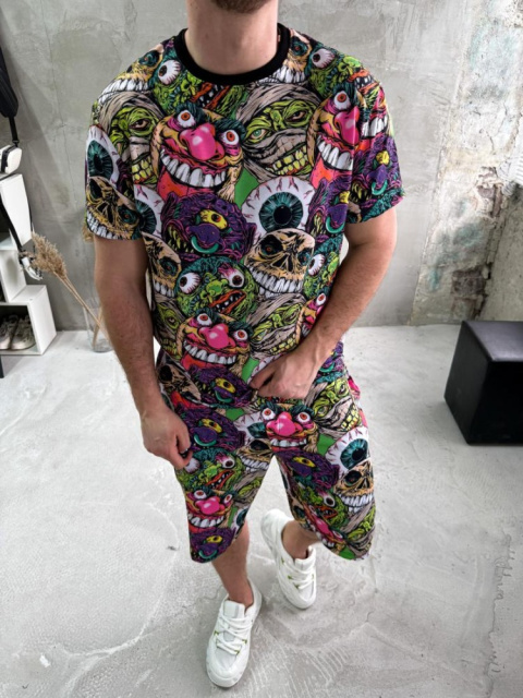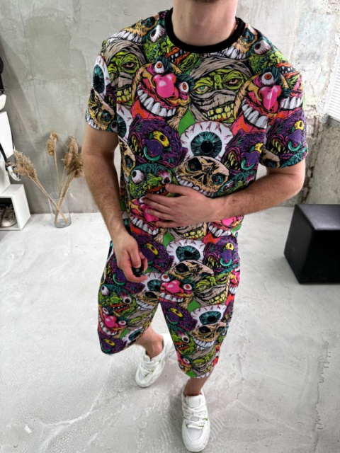 Різнокольоровий чоловічий легкий літній спортивний костюм з яскравим принтом легка футболка та зручні шорти - бездоганний вибір для модників та модниць, що прагнуть до створення стильних та елегантних образів, які будуть доречні як на міських вулицях, так і на пляжних курортах у розпал літа