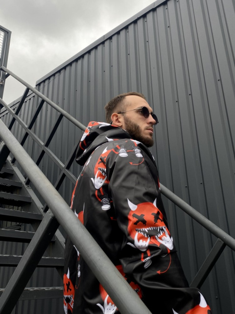 Чорна принтована чоловіча вітрівка з капюшоном ідеальний вибір на весняно-осінній сезон