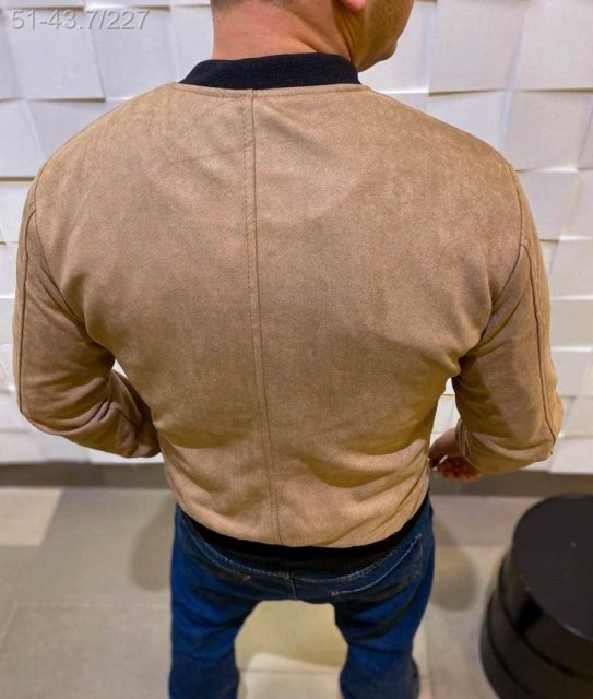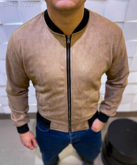Бежевий чоловічий замшевий бомбер ідеальний вибір на весняно-осінній сезон