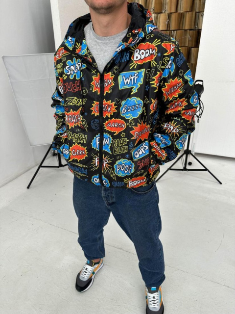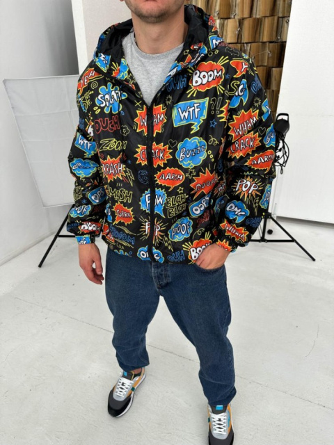 Принтована чоловіча чорна вітрівка з капюшоном ідеальний вибір на весняно-осінній сезон