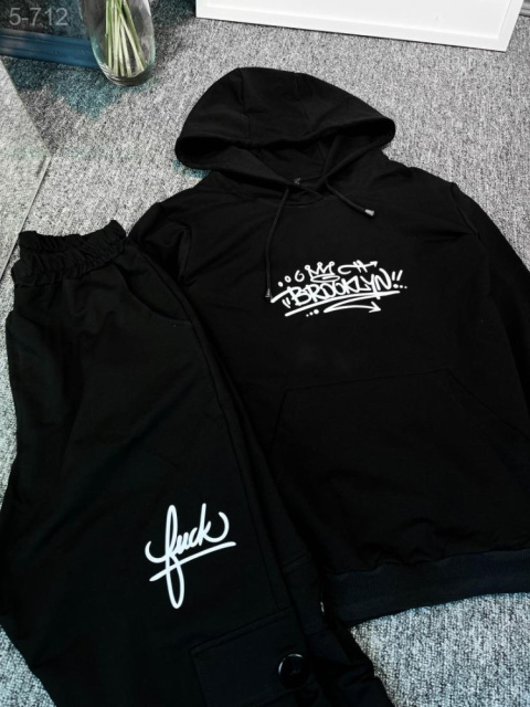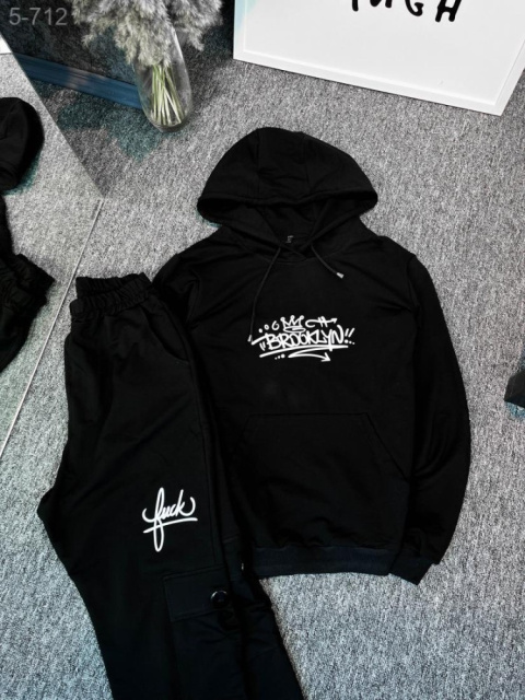 Чорний спортивний чоловічий костюм з написами універсальний комплект для створення яскравого повсякденного образу незалежно від погодних умов