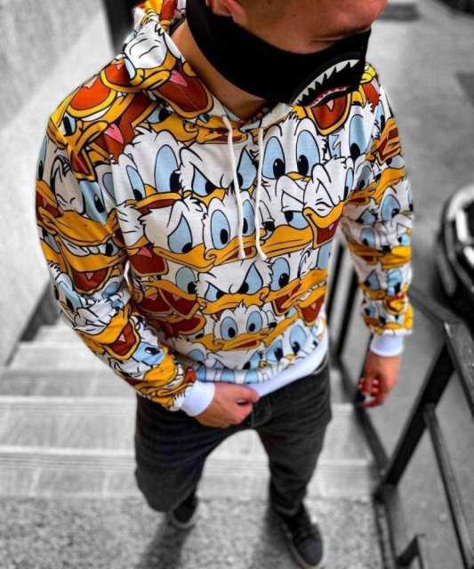 Мультяшний різнокольровий весняний чоловічий худі з принтом унікальне поєднання модних тенденцій та комфорту для сучасних людей, які цінують яскраву індивідуальність та практичність в одному стильному образі