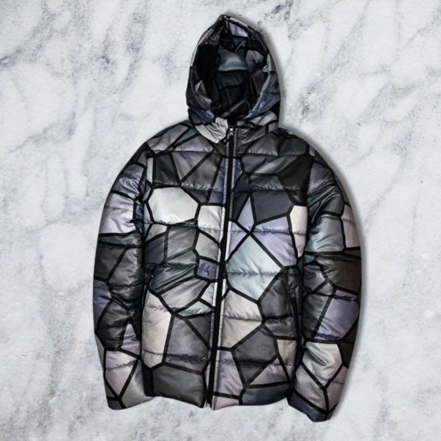 Чоловіча демісезонна куртка з геометричним принтом ідеальне поєднання сучасного стилю та захисту від холоду, яке підходить для тих, хто цінує комфорт і естетику у своєму зимовому образі