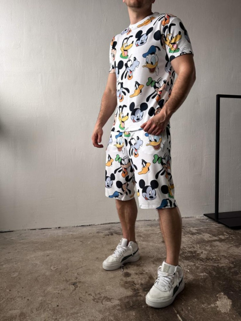 Білий чоловічий яскравий літній спортивний костюм з трендовим мультяшним принтом легка футболка та зручні шорти - бездоганний вибір для модників та модниць, що прагнуть до створення стильних та елегантних образів, які будуть доречні як на міських вулицях, так і на пляжних курортах у розпал літа