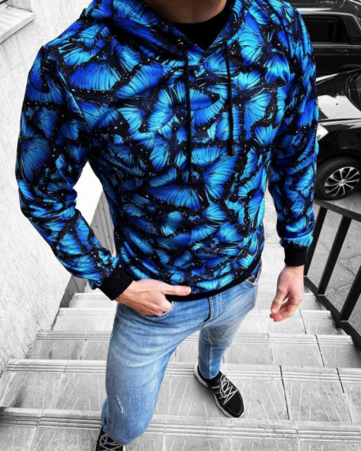 Яскравий чоловічий весняний синій худі з метеликами унікальне поєднання модних тенденцій та комфорту для сучасних людей, які цінують яскраву індивідуальність та практичність в одному стильному образі