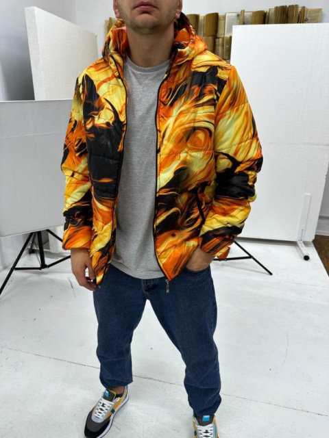 Яскрава помаранчева чоловіча куртка з капюшоном ідеальне поєднання сучасного стилю та захисту від холоду, яке підходить для тих, хто цінує комфорт і естетику у своєму зимовому образі