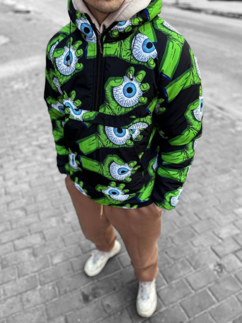 Чорний чоловічий теплий анорак з мультяшним принтом ідеальне поєднання сучасного стилю та захисту від холоду, яке підходить для тих, хто цінує комфорт і естетику у своєму зимовому образі
