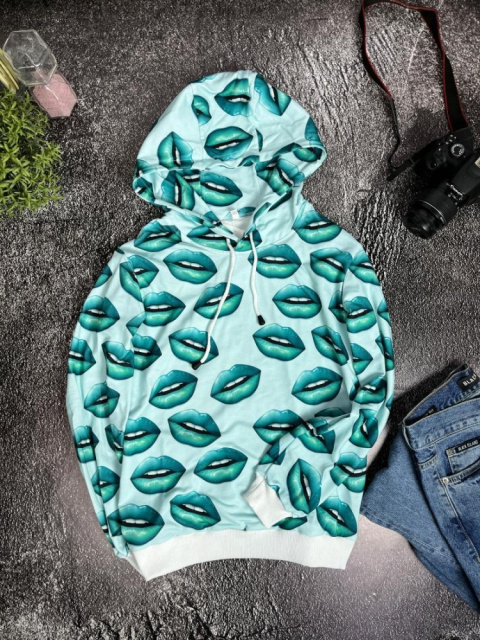 Принтований бірюзовий худі з капюшоном унікальне поєднання модних тенденцій та комфорту для сучасних людей, які цінують яскраву індивідуальність та практичність в одному стильному образі