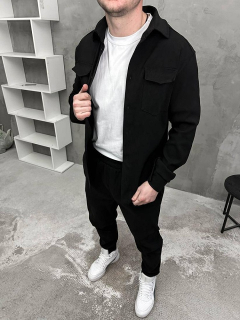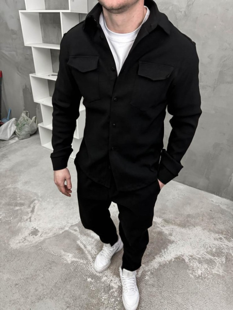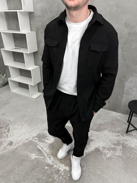 Чорний чоловічий однотонний класичний костюм стильна сорочка і зручні штани - відмінний вибір для стильного і комфортного образу в спеку!