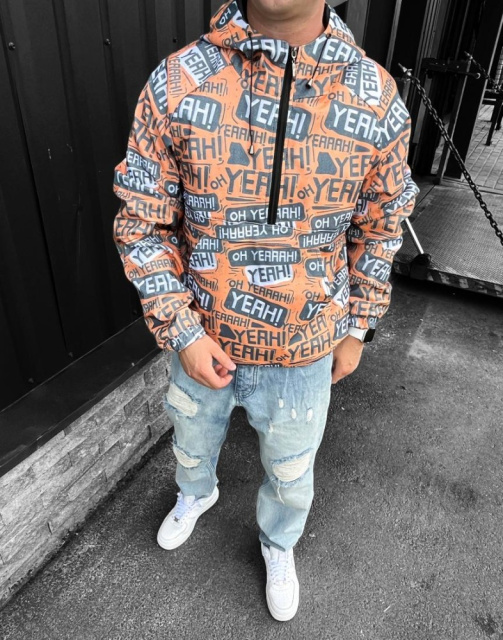 Анорак котон капюшон трикотаж на підкладці принт ідеальний вибір на весняно-осінній сезон