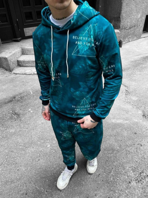 Зелений спортивний костюм з написами та принтом універсальний комплект для створення яскравого повсякденного образу незалежно від погодних умов