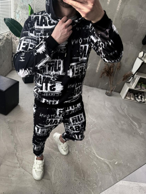 Чорний спортивний осінній костюм з написами худі штани універсальний комплект для створення яскравого повсякденного образу незалежно від погодних умов