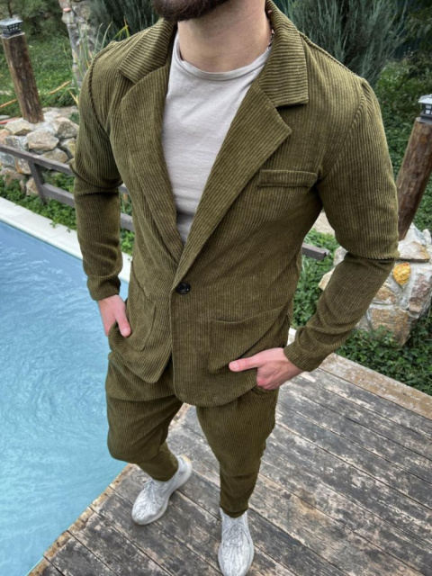 Класичний чоловічий костюм хакі у рубчик стильна сорочка і зручні штани - відмінний вибір для стильного і комфортного образу в спеку!