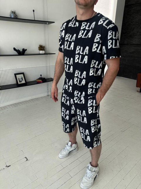 Чорний чоловічий літній комфортний спортивний костюм з яскравими написами легка футболка та зручні шорти - бездоганний вибір для модників та модниць, що прагнуть до створення стильних та елегантних образів, які будуть доречні як на міських вулицях, так і на пляжних курортах у розпал літа