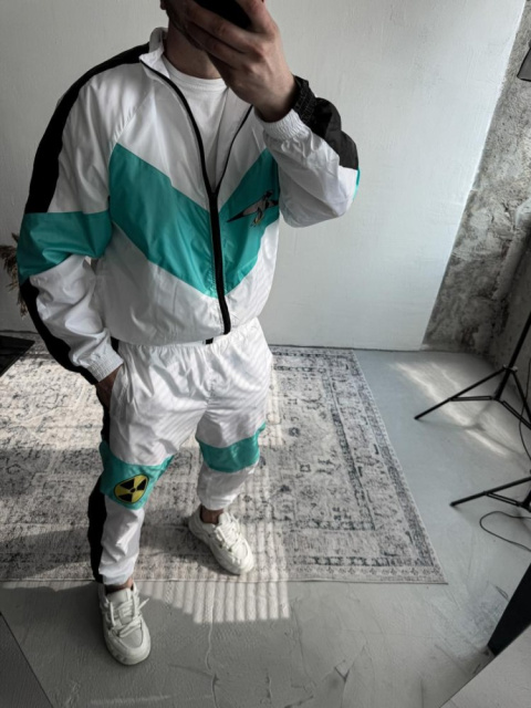 Білий спортивний костюм олімпійка штани з принтом універсальний комплект для створення яскравого повсякденного образу незалежно від погодних умов