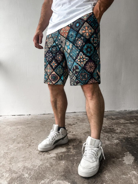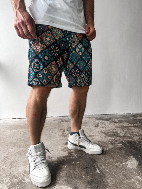 Літні зелені чоловічі шорти з геометричним принтом ідеальне поєднання сучасного стилю та зручності, яке підходить для тих, хто цінує комфорт і естетику у своєму літньому образі