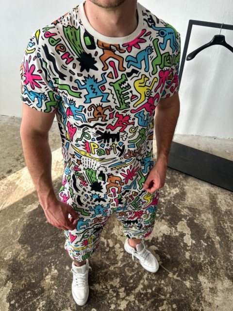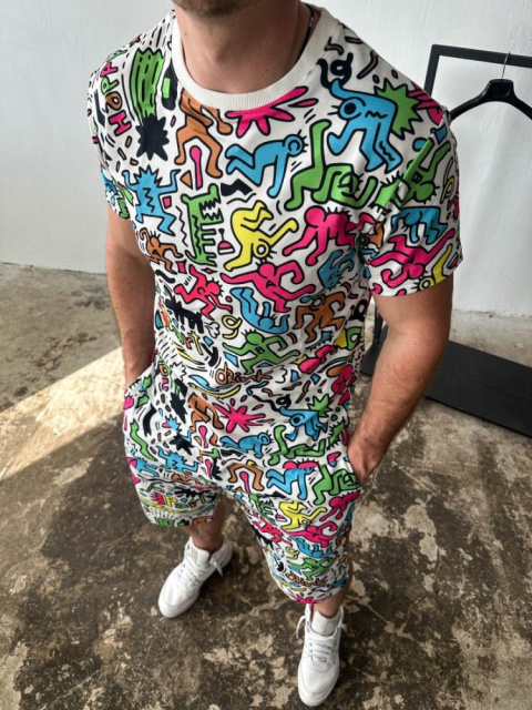 Білий чоловічий комфортний літній спортивний костюм-двійка з трендовим принтом легка футболка та зручні шорти - бездоганний вибір для модників та модниць, що прагнуть до створення стильних та елегантних образів, які будуть доречні як на міських вулицях, так і на пляжних курортах у розпал літа