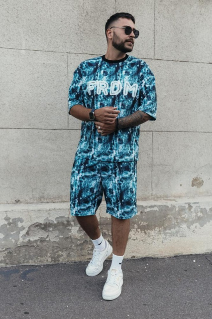 Літній чоловічий спортивний костюм з абстрактним принтом легка футболка та зручні шорти - бездоганний вибір для модників та модниць, що прагнуть до створення стильних та елегантних образів, які будуть доречні як на міських вулицях, так і на пляжних курортах у розпал літа
