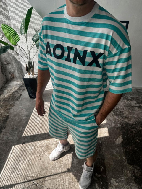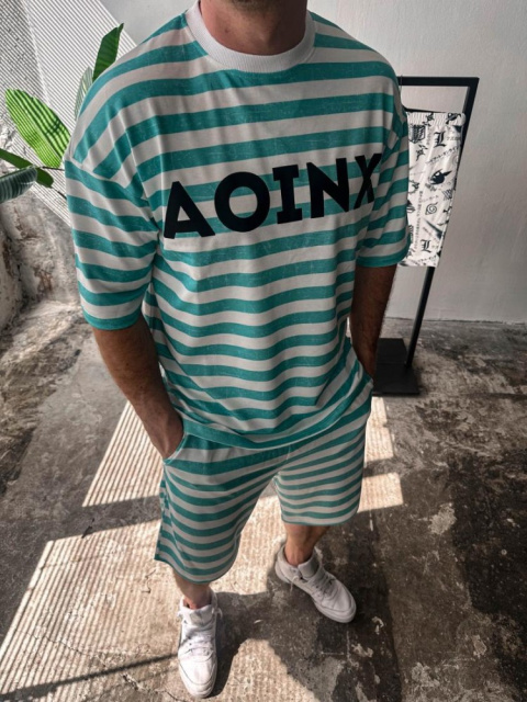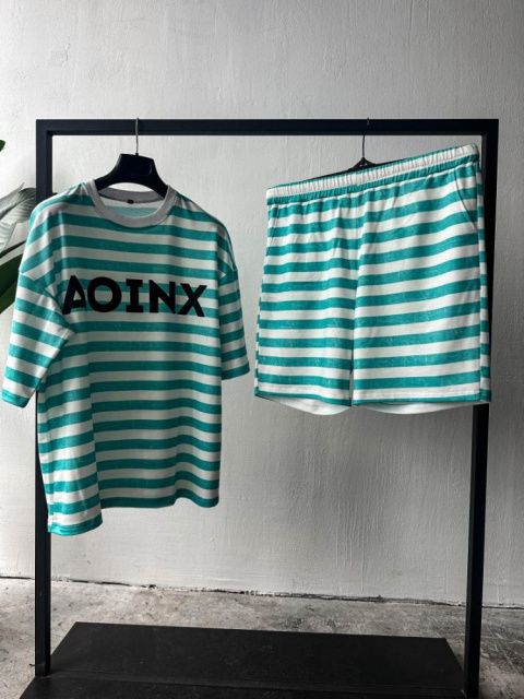 М'ятний спортивний костюм у смужку футболка шорти легка футболка та зручні шорти - бездоганний вибір для модників та модниць, що прагнуть до створення стильних та елегантних образів, які будуть доречні як на міських вулицях, так і на пляжних курортах у розпал літа