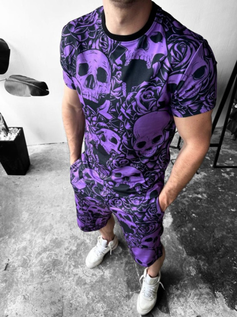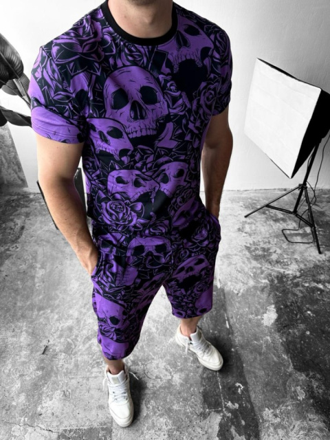 Фіолетовий чоловічий літній стильний спортивний костюм з модним принтом черепів легка футболка та зручні шорти - бездоганний вибір для модників та модниць, що прагнуть до створення стильних та елегантних образів, які будуть доречні як на міських вулицях, так і на пляжних курортах у розпал літа