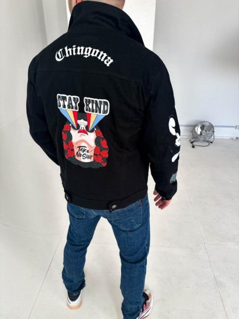 Чорна чоловіча джинсова куртка з яскравими елементами ідеальний вибір на весняно-осінній сезон
