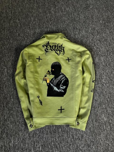 Зелена чоловіча джинсова куртка з принтом ідеальний вибір на весняно-осінній сезон