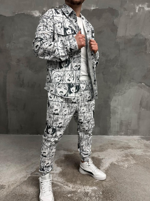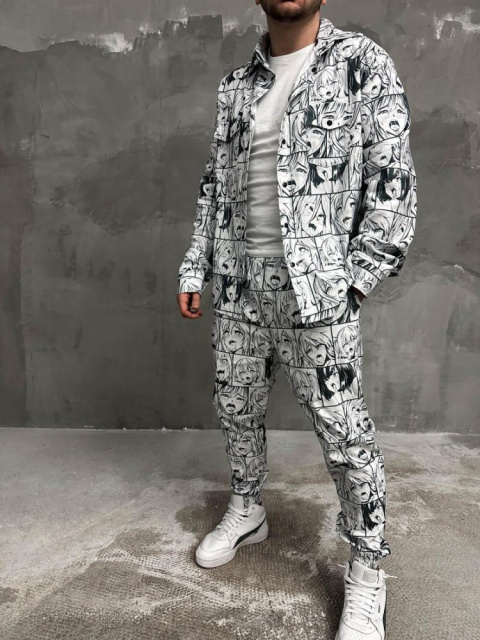 Білий принтований костюм (сорочка, штани) з бенгаліну стильна сорочка і зручні штани - відмінний вибір для стильного і комфортного образу в спеку!