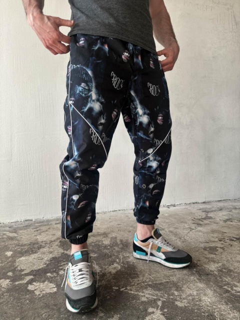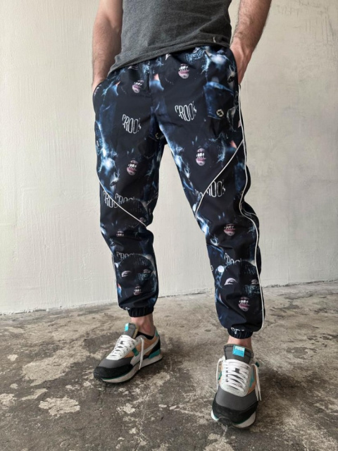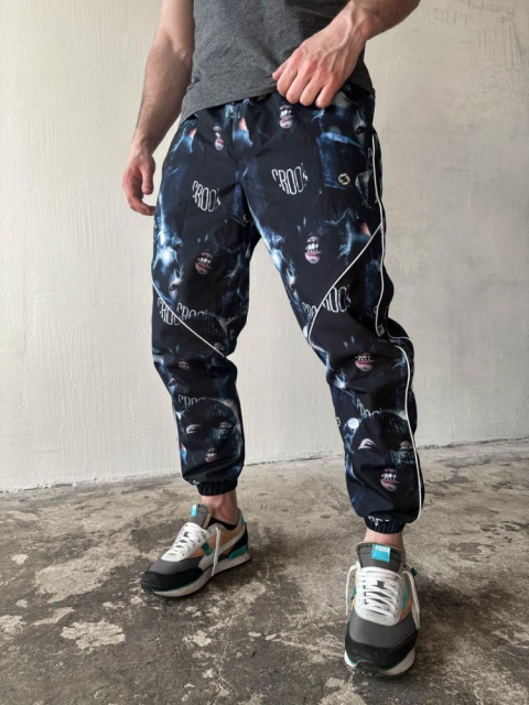 Чорні спортивні принтовані штани (плащівка на підкладці) ідеальне поєднання сучасного стилю та функціональності, яке підходить для активних людей,...